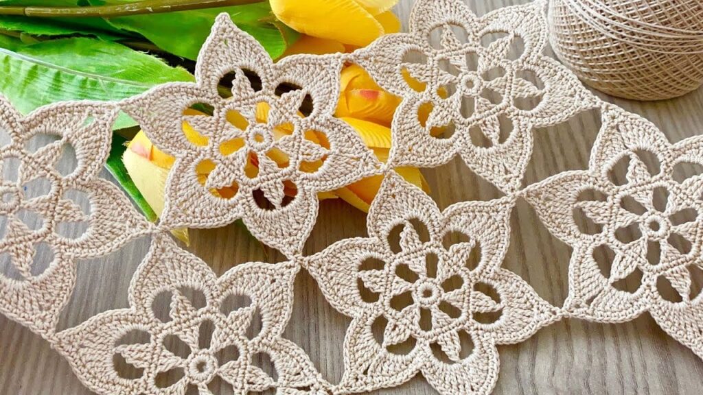 Absolutely! This is a join-as-you-go 6-petal lace flower motif commonly used for table runners, shawls, blouses, and scarves. Below is a step-by-step written pattern (round-by-round) so you can reproduce exactly what you see in the picture.