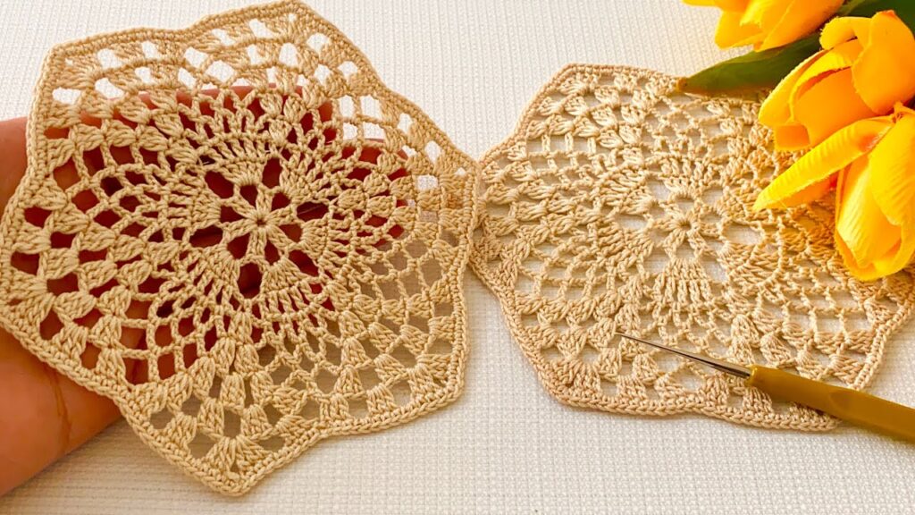 Crochet lace has a timeless beauty, and the pieces shown above are wonderful examples of delicate craftsmanship. Made with fine cotton thread and a small steel hook, these motifs resemble miniature doilies or decorative coasters. Their floral centers expand into soft, scalloped edges, giving them a classic vintage look perfect for home décor, gift sets, table settings, or even for joining into larger projects like table runners.